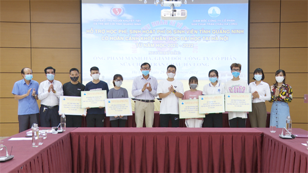 Theo đó, Công ty CP Sữa chua trân châu Hạ Long hỗ trợ toàn bộ học phí cho 2 sinh viên từ tháng 7/2021 đến khi học xong đại học; hỗ trợ cho 4 sinh viên mức 1 triệu đồng/sinh viên/tháng, tính từ tháng 7/2021 đến năm 22 tuổi, sau thời gian này nếu còn học sẽ chuyển sang hỗ trợ học phí.