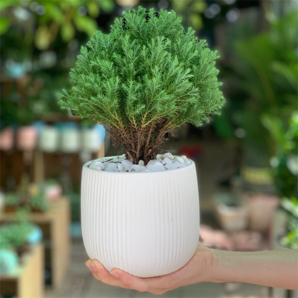 Cây Tùng bồng lai có tên gọi khác là Tùng lá văn trúc hay Tùng lá thiên môn đông, có nguồn gốc từ Mỹ được du nhập vào Việt Nam. Cây Tùng bồng lai mang ý nghĩa phong thủy như tài lộc, thịnh vượng, cùng như sức khỏe và giữ tiền, giữ của cho gia chủ, thích hợp trang trí để bàn, kệ sách, trang trí quán cà phê.