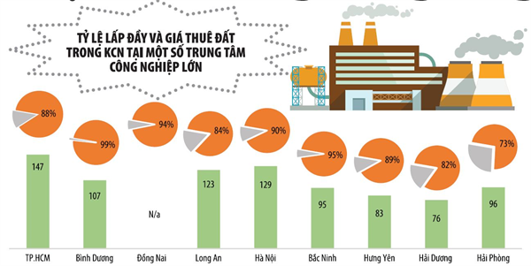 Tỷ lệ lấp đầy trung bình tại các KCN tăng mạnh từ năm 2018 (thời điểm thương chiến Mỹ - Trung nóng dần lên) đã dẫn đến sự thiếu hụt nguồn cung và nhu cầu có thêm các KCN mới tại những địa bàn trọng yếu. Nhu cầu thuê đất, nhà xưởng, kho bãi tăng đột biến khiến giá thuê ở các KCN gần các thành phố lớn leo thang.
