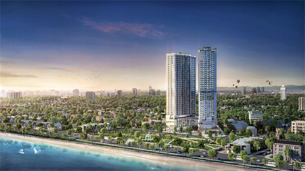 Dự án được bố trí hai tòa tháp, thiết kế hình cánh cung mở, vươn mình đón làn gió tươi mát từ vịnh biển thổi vào và đón nhận may mắn và vượng khí cho gia chủ.
