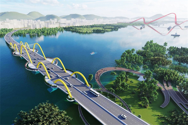Tháng 9/2021, công trình thi công xong dầm chính của cầu chính; tháng 10/2021 hoàn thiện bê tông nhồi vòm thép, lắp đặt cáp treo và hợp long ngày 2/11/2021.