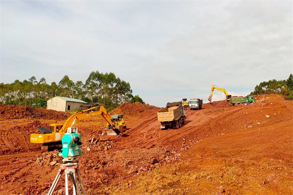 Tranh thủ mùa khô thuận lợi, các nhà thầu đang huy động tối đa thiết bị, nhân lực, tập trung đào đắp nền đường.