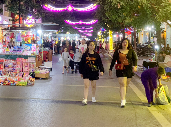 Du khách dạo bước trên Phố đi bộ Móng Cái. Ảnh: Tạ Quân