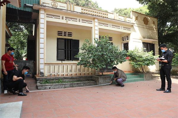Cán bộ Trung tâm Phát triển quỹ đất TP Hạ Long đo đạc, kiểm đếm mặt bằng.