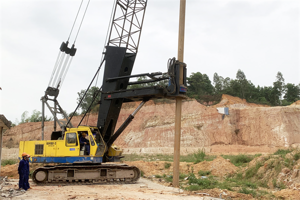 Triển khai cọc khoan nhồi, thi công cầu vượt trên tuyến.