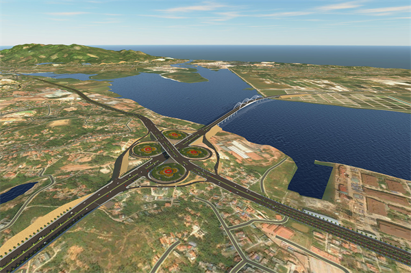 Phối cảnh tuyến dự án và nút giao với đường dẫn cầu Cửa Lục 1.